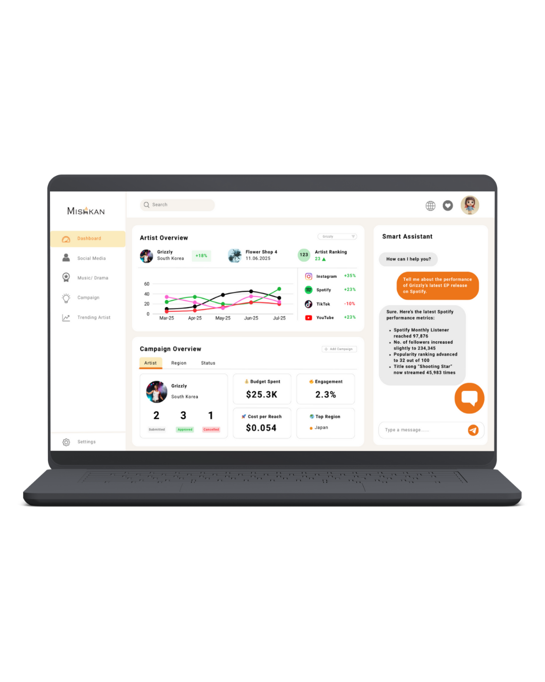 Looking for solutions that could save your time from switching back and forth checking artist/ IP SNS performances? We have put them all in one place and empower AI-driven analysis for you!